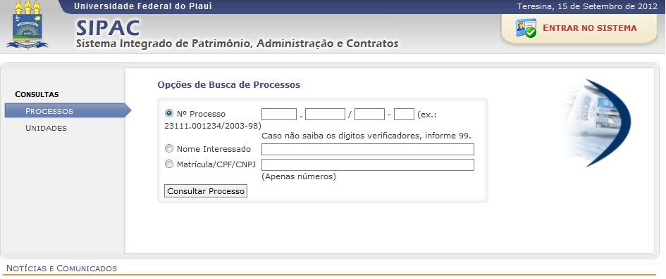 Hoje, 17 de setembro de 2012, entra em produção na Universidade Federal do Piauí (UFPI) o SIPAC (Sistema Integrado de Patrimônio, Administração e Contratos) com o módulo de Protocolo de Processos e Documentos. Este módulo auxilia a gestão documental na instituição e é bastante abrangente, permitindo o registro do protocolo de processos e documentos, a tramitação eletrônica, a utilização memorandos eletrônicos, a emissão de vários relatórios de gestão.