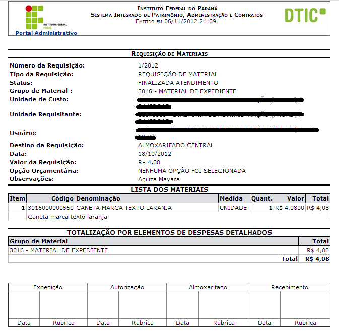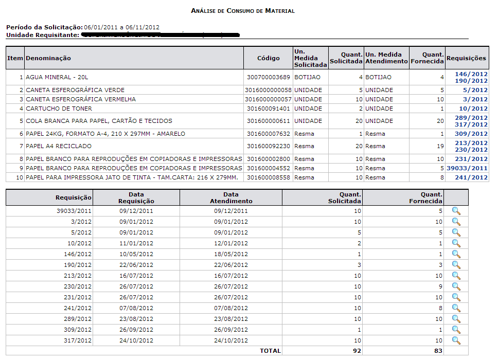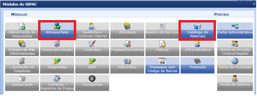 As requisições de materiais de consumo podem ser feitas ao almoxarifado de forma eletrônica, bem como o registro do seu atendimento.