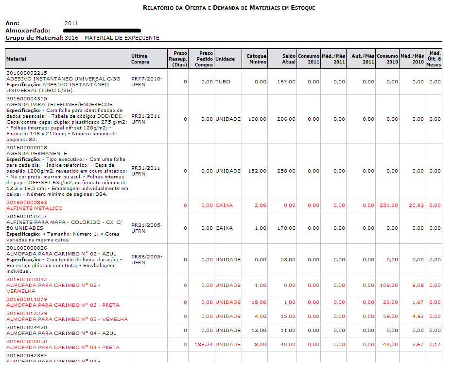 Além disso, ele possui vários relatórios gerenciais que auxiliam às atividades dos almoxarifados, como por exemplo:
