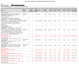 Exemplo do relatório Oferta e Demanda de Materiais em Estoque