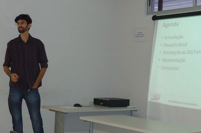 Arlindo apresentou o SIGFundação, que está há um ano em desenvolvimento e irá entrar em produção em fevereiro de 2013. Ele mostrou quais são os objetivos de uma fundação de apoio, citando o caso da FUNPEC aonde o SIGFundação será implantado.