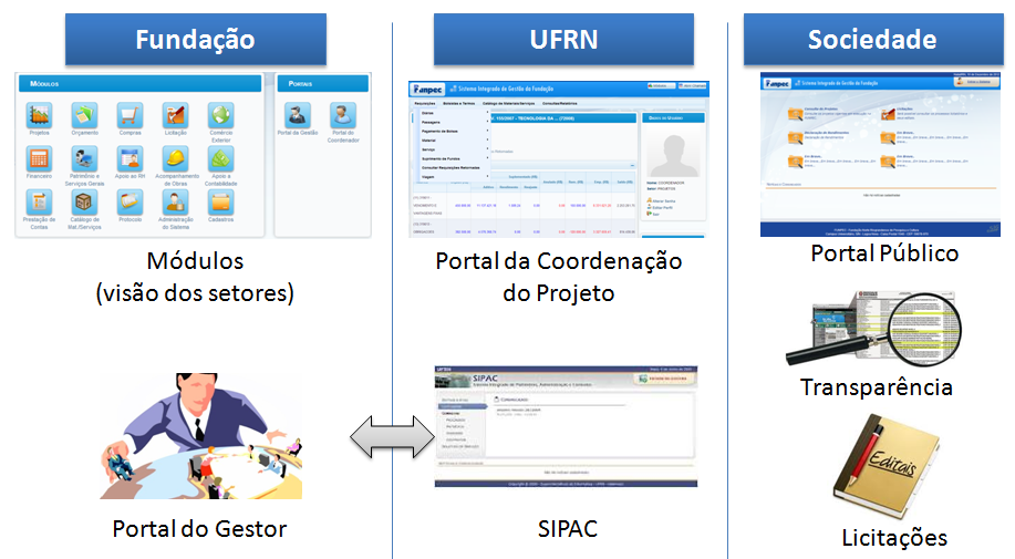 O SIGFundação está sendo desenvolvido nos moldes dos sistemas SIG (SIGAA, SIPAC, SIGRH), utilizando tecnologia atual e será acessado completamente pela Web, diferente da situação atual da fundação. Ele será um sistema integrado, englobando todos os setores da FUNPEC: Projetos, Compras, Licitação, Comércio Exterior, Empenho, Liquidação, Pagamento, Conciliação, Contas a Receber, Acompanhamento de Obras, Apoio a RH, Apoio a Contabilidade, Prestação de Contas, etc. Além disso, terá alguns portais, como por exemplo: Portal da Coordenação do Projeto e Portal da Gestão.