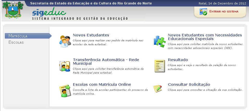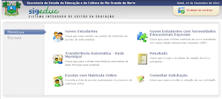 Atualmente o SIGEduc é formado por 15 módulos e aproximadamente 300 funcionalidades. Está em produção desde outubro de 2012, sendo implantado, inicialmente nas escolas de Natal para a realização da matrícula online de 2013. A partir de 2013, todas as escolas do estado do Rio Grande do Norte estarão usando esse novo sistema.