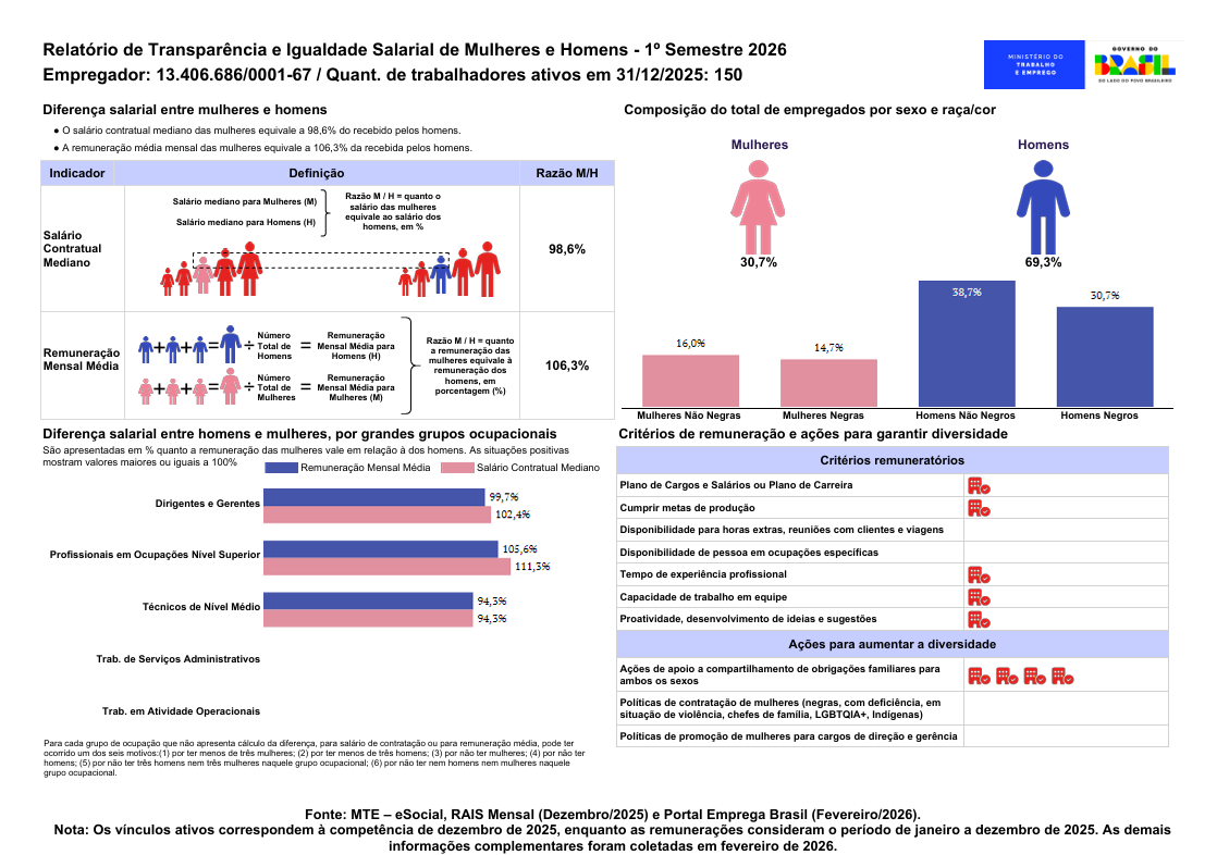 O Relatório de Transparência e Igualdade Salarial 2026 está disponível para consulta. Convidamos todos a acompanharem nossos indicadores e a evoluírem conosco nessa jornada por um mercado de trabalho mais justo.